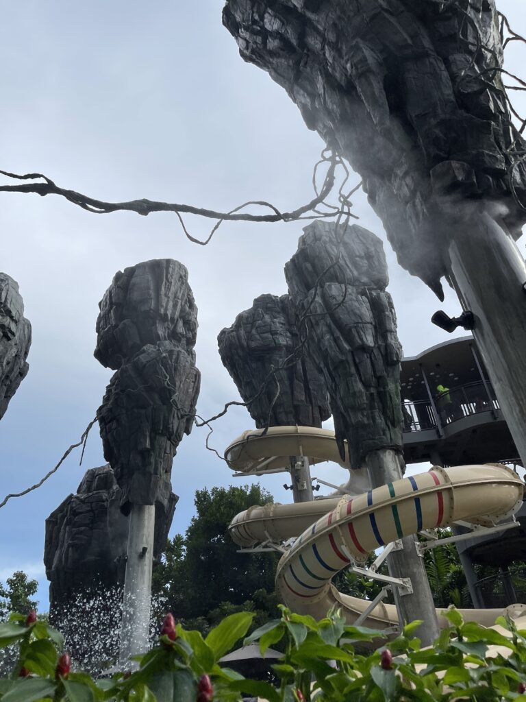 沿途的造景也是令人歎為觀止,前段是漂浮的巨石、後段則彷彿處於熱帶叢林中,當我悠閒的躺在泳圈上漂浮著前進,望著一旁的造型,真的會以為自己在什麼環球影城樂園裡面。