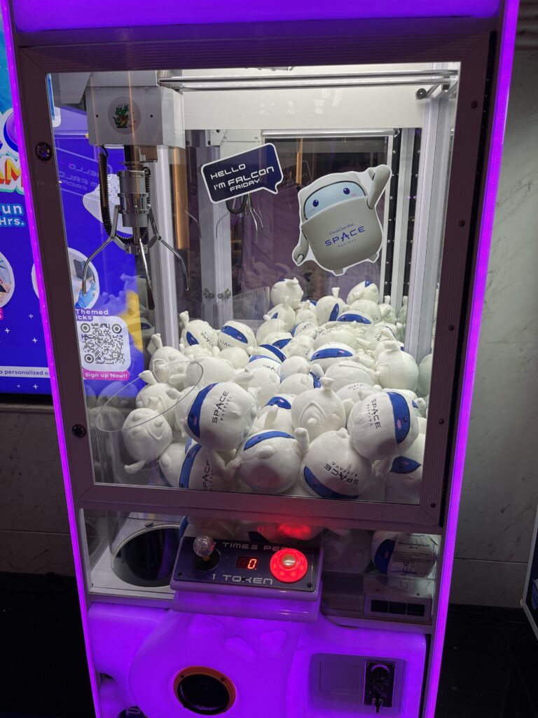 但最酷的還是旁邊這台夾娃娃機!有夠可愛!但只能用代幣來玩夾娃娃機。