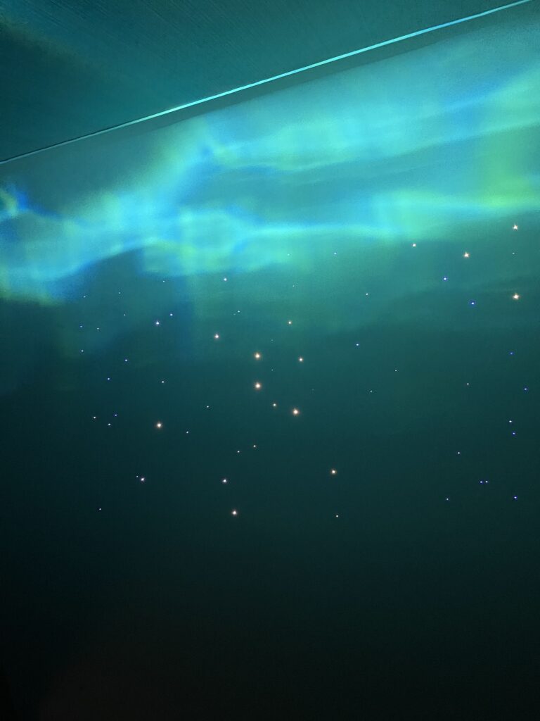 睡覺前我迫不及待的將燈光切換成極光模式,興奮到驚呼連連,而且極光還是會流動的!雖然我累到一下子就睡著了,但當下的興奮感至今仍是令我難忘。